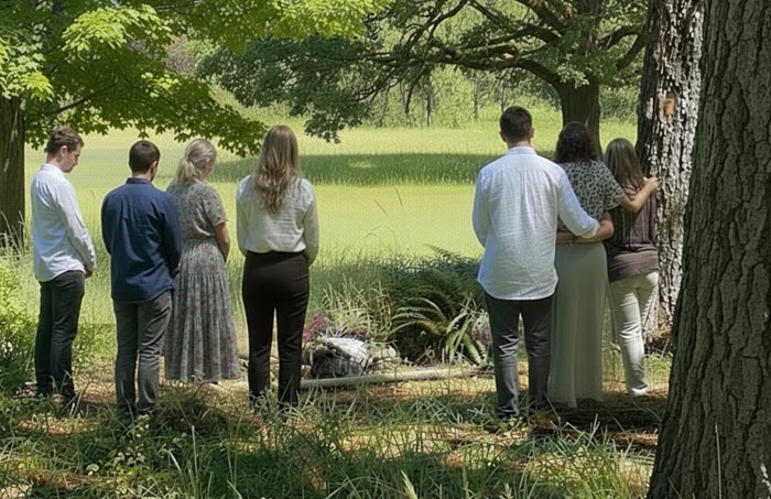 In practical terms, Green Burial is performed without toxic embalming chemicals, metal caskets, or concrete vaults.